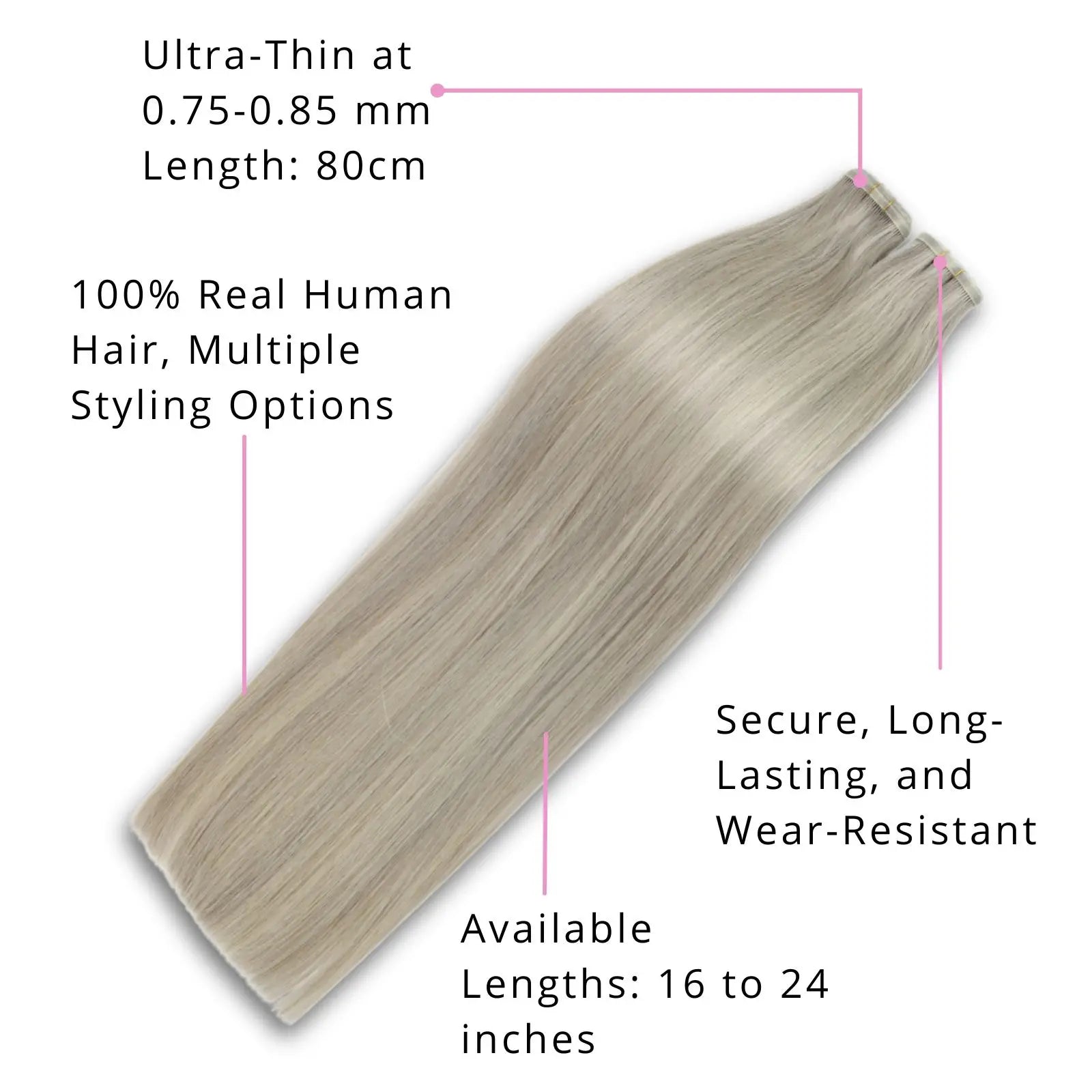 Invisible Silk Weft Hair Extensions Virgin Human Hair Platinum Blonde #60