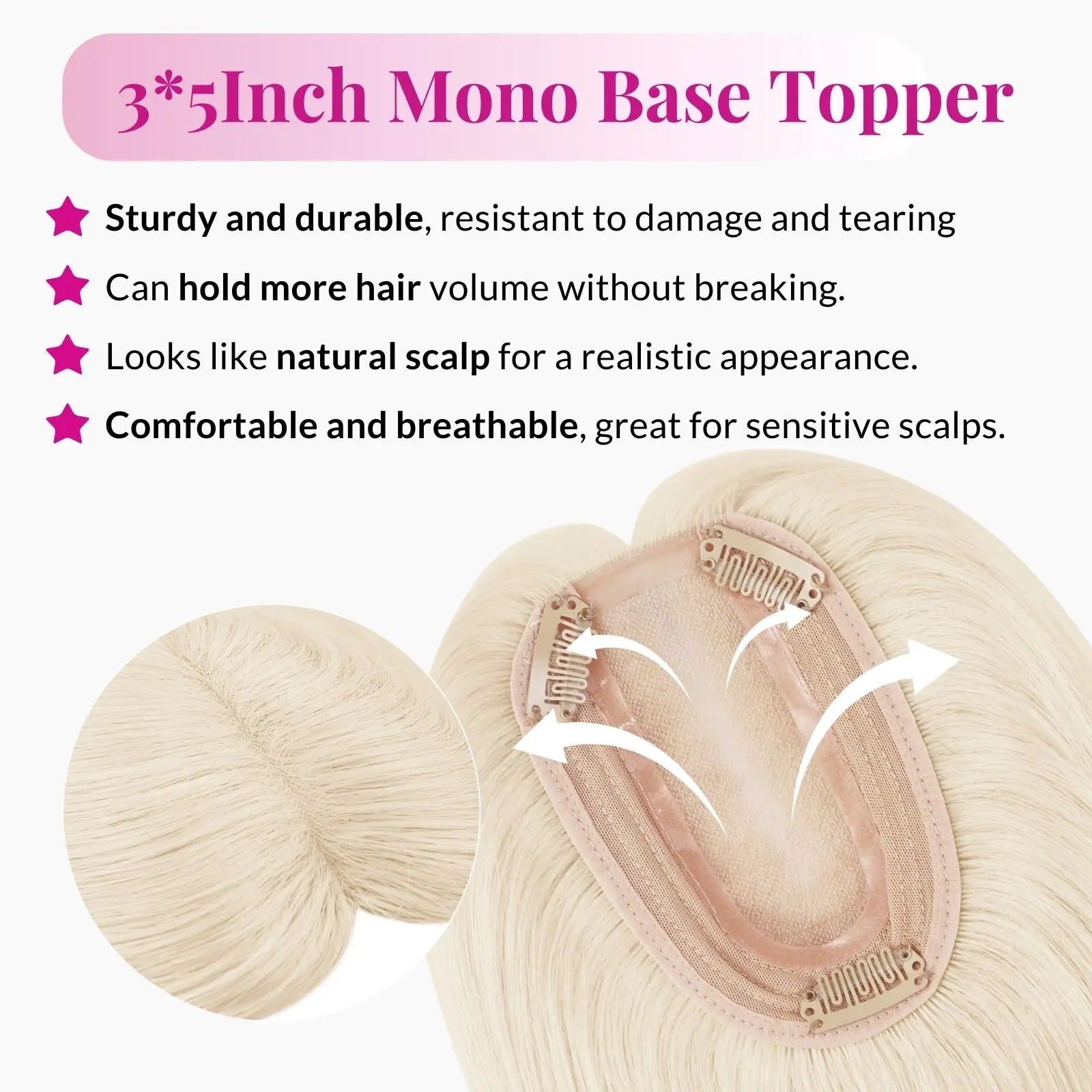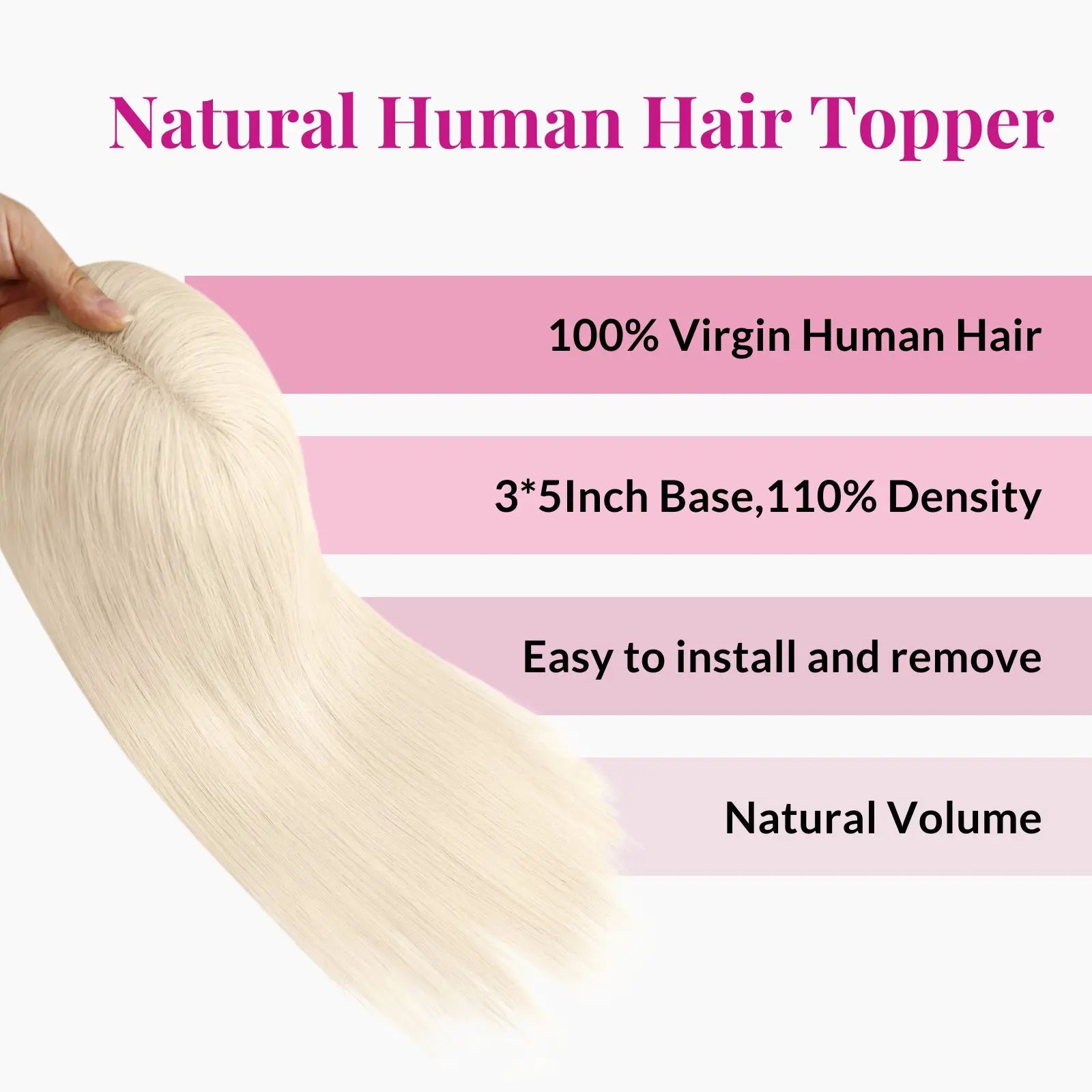 2.Choose a Matching Color.Our product images are taken from real photos, but there may be slight variations in color due to lighting, angle, and display differences. If you have concerns about the color, please feel free to contact us via email. Additionally, our hair toppers are made from real human hair and can be permed or dyed.