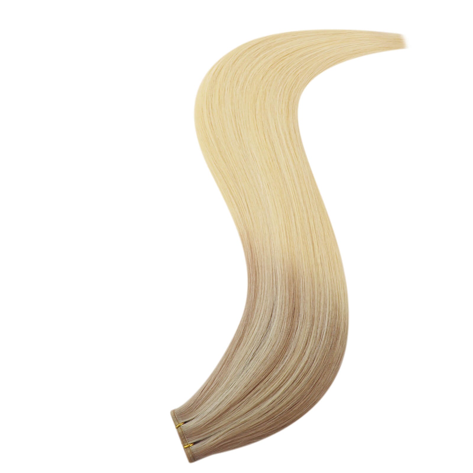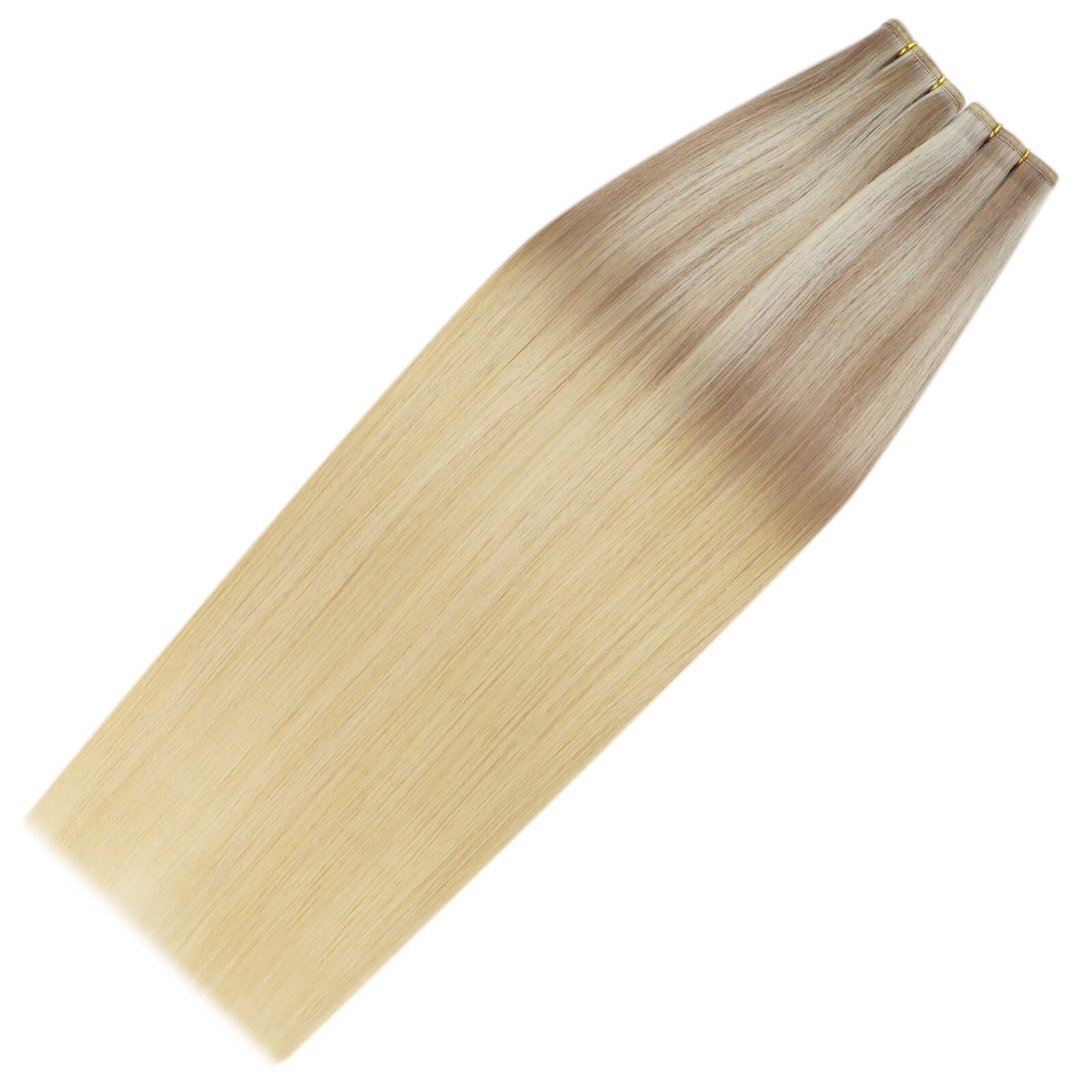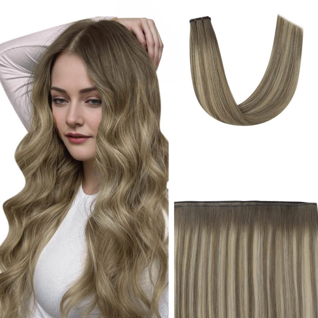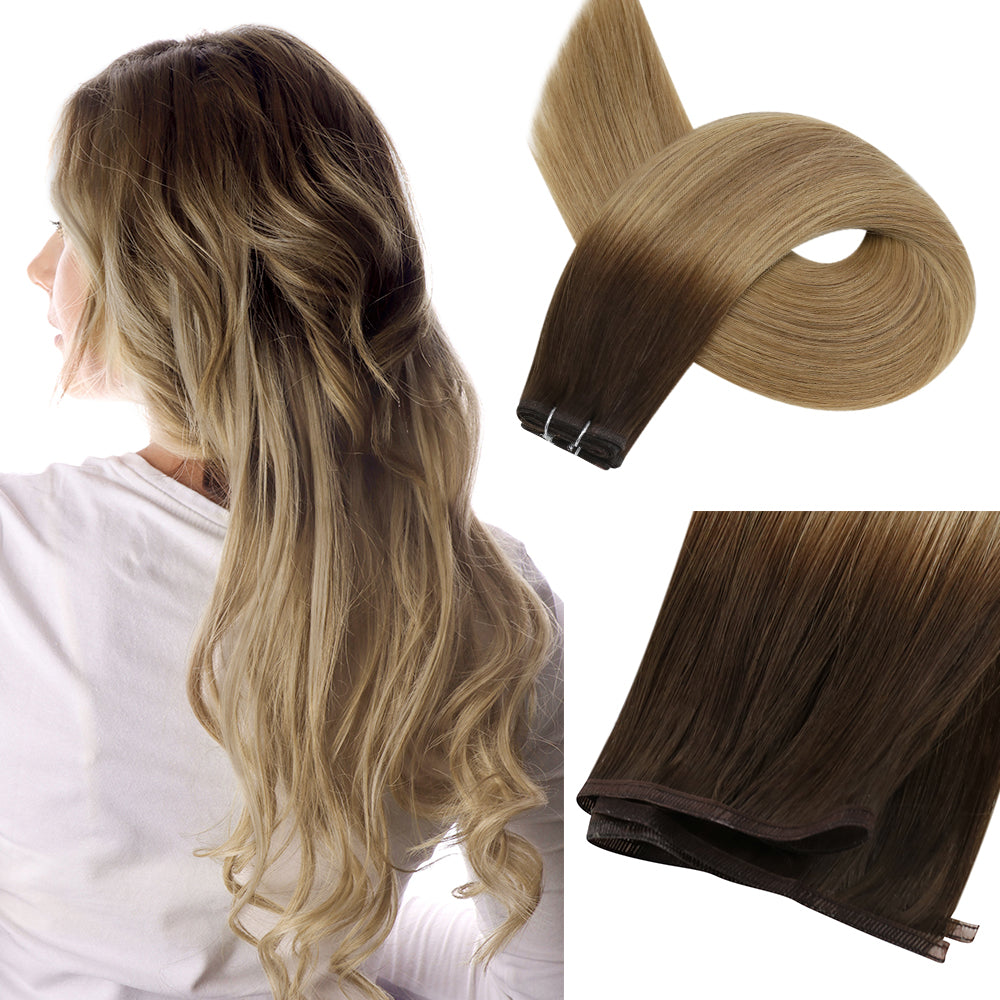 Flat Silk Weft Hair Extensions Virgin Human Hair Bundles Balayage Dirty Blonde #Nordic