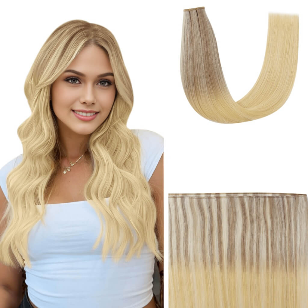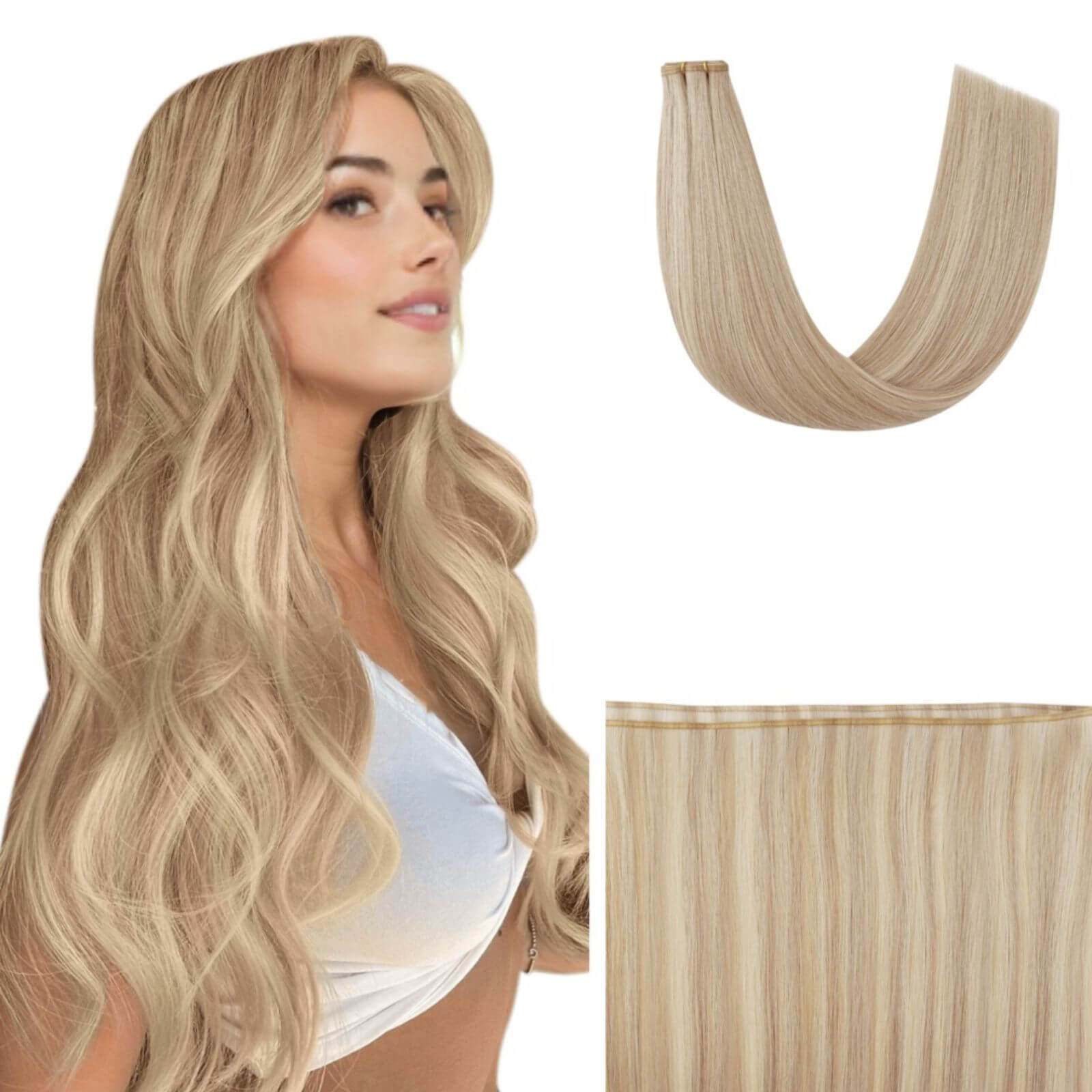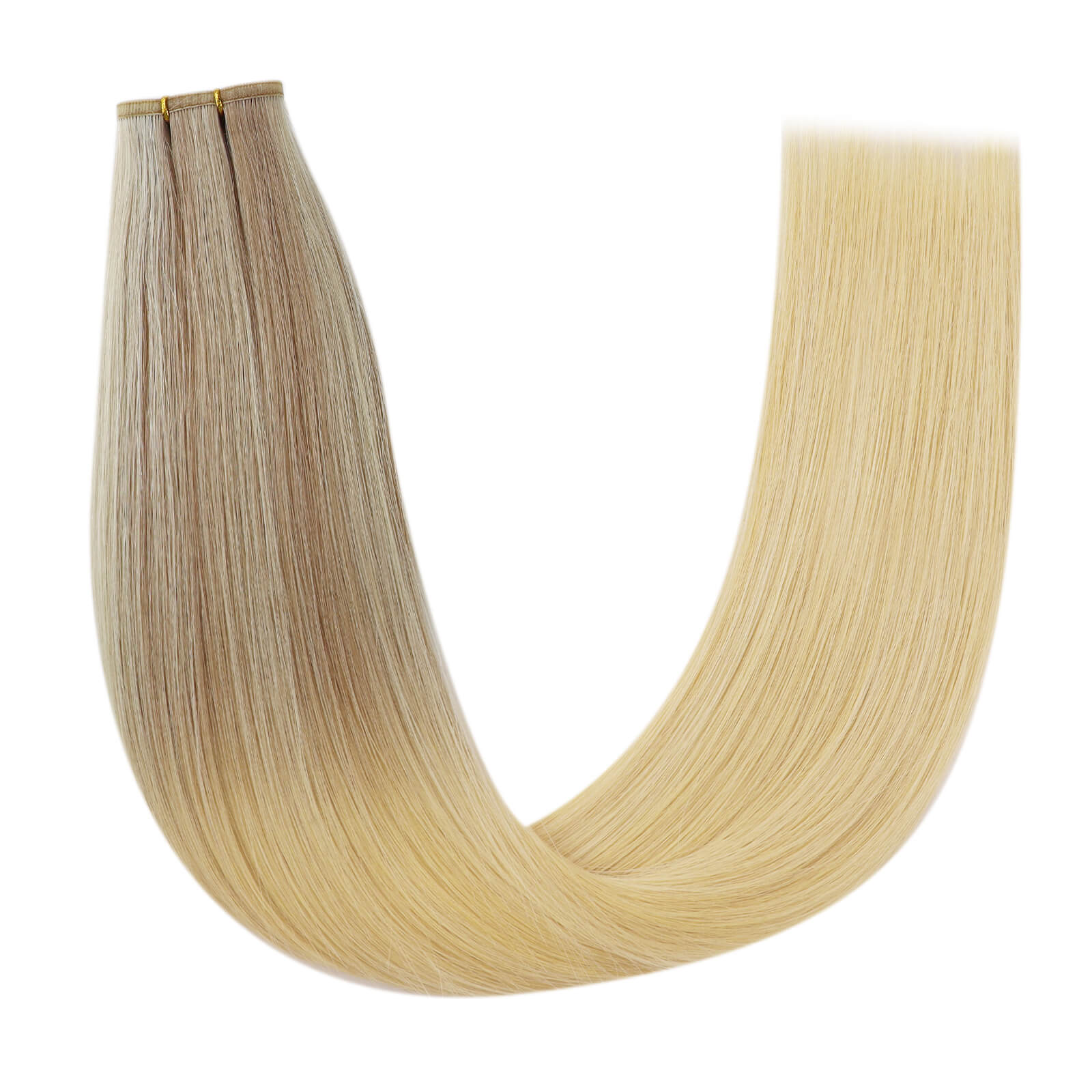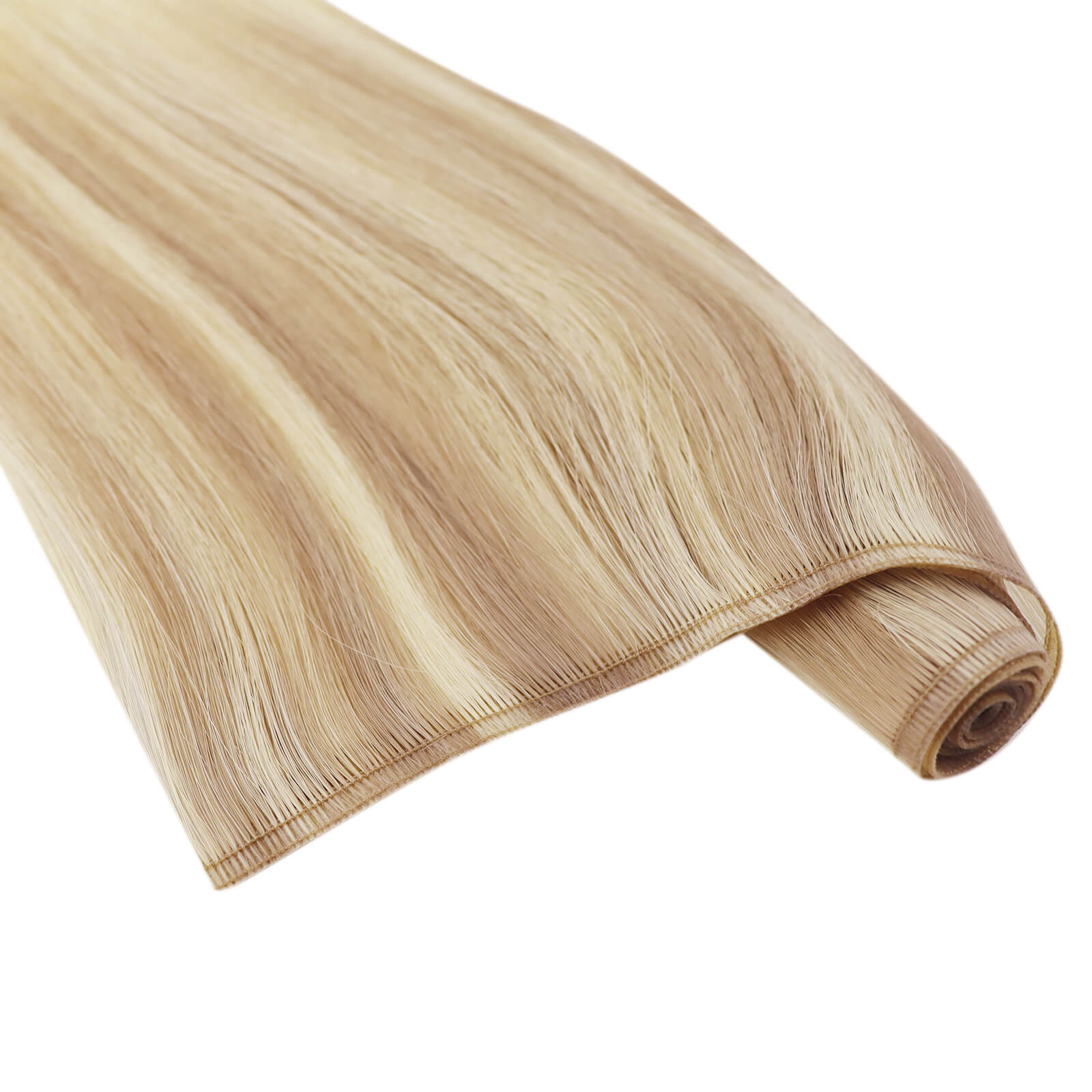 Flat Silk Weft Hair Extensions Virgin Human Hair Bundles Balayage Dirty Blonde #Nordic
