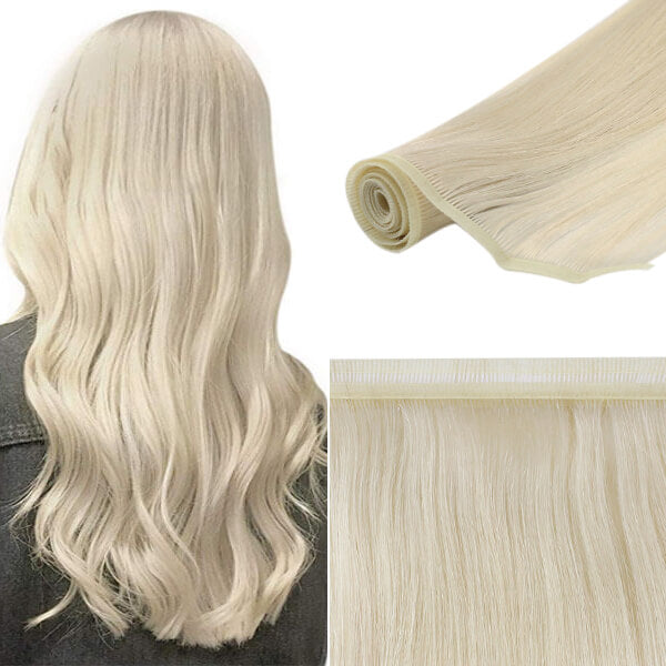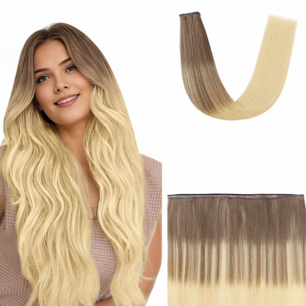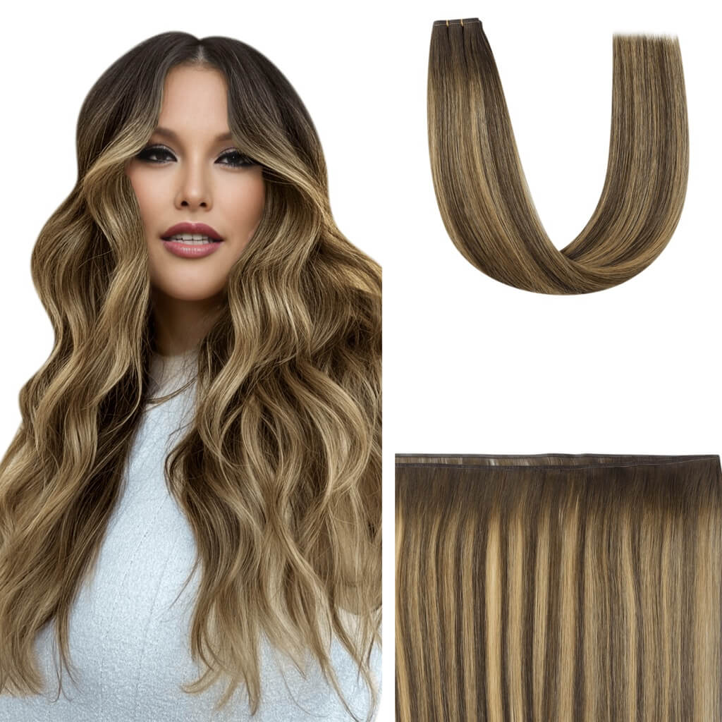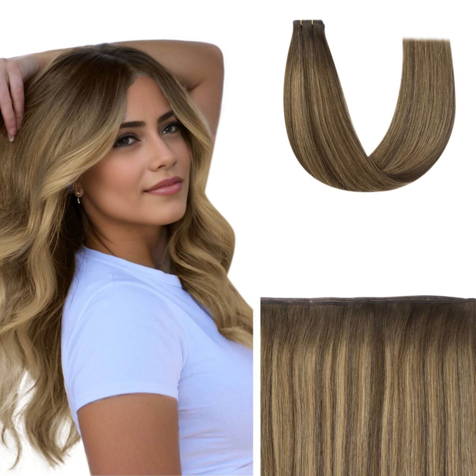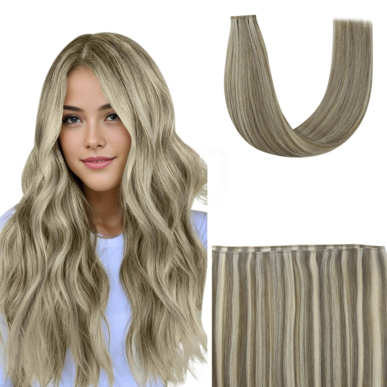 Flat Silk Weft Hair Extensions Virgin Human Hair Bundles Balayage Dirty Blonde #Nordic